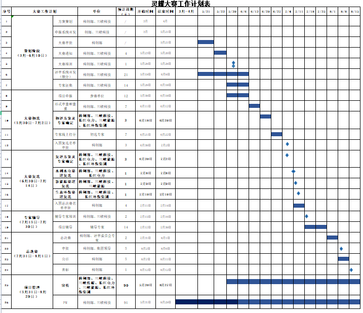 以大賽總體方案為綱領,圍繞大賽策劃、初選、復選、導師培訓、總決賽等核心節點,細化形成26項任務清單。實行周例會機制,通過可視化看板動態跟蹤關鍵節點進度,確保賽事工作環環相扣。